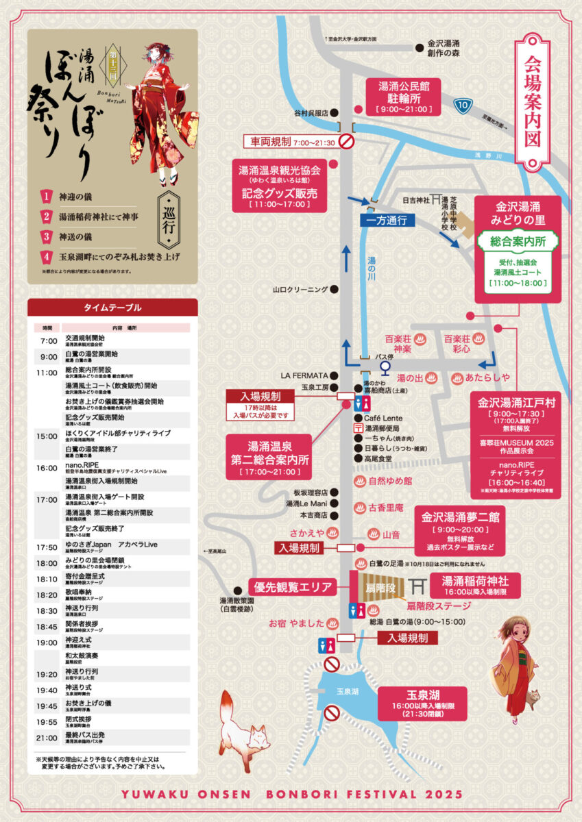※天候等の事由により開催時間及び開催内容が変更となる場合がございます。予めご了承ください。