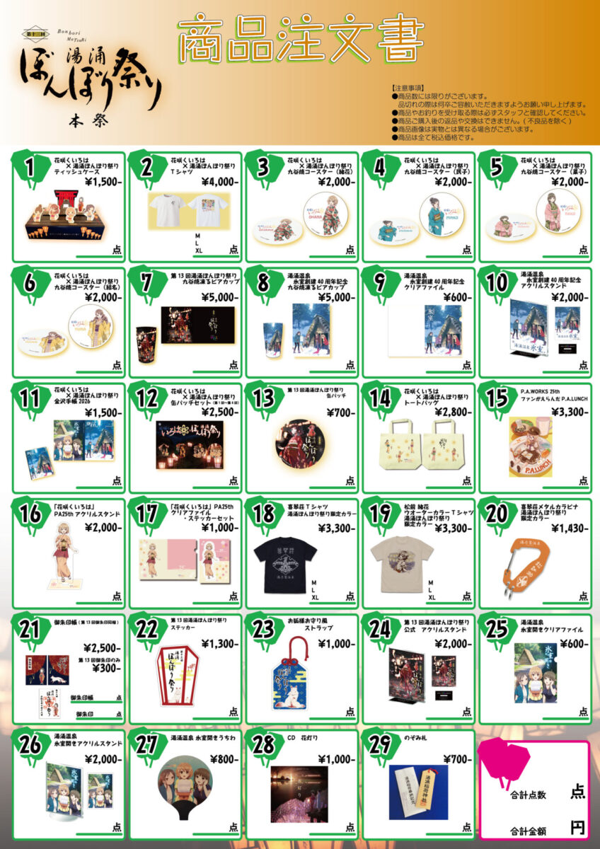 当日は会場に備え付けてあります下記注文書にご記入下さい。