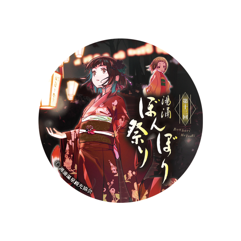 第13回湯涌ぼんぼり祭りのポスターイラストを用いた缶バッチ