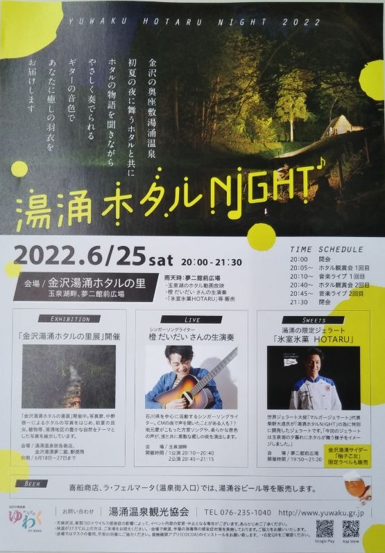 | イベント名 | 2022・6・25(土曜)♬湯涌ホタル NIGHT♬ |